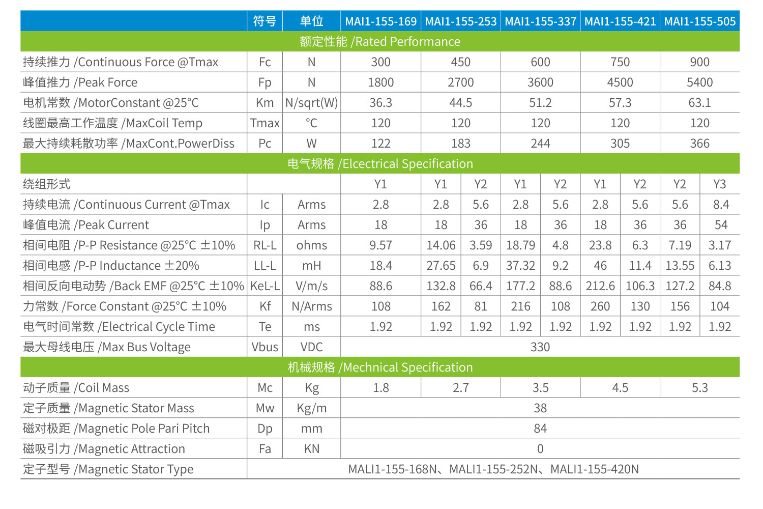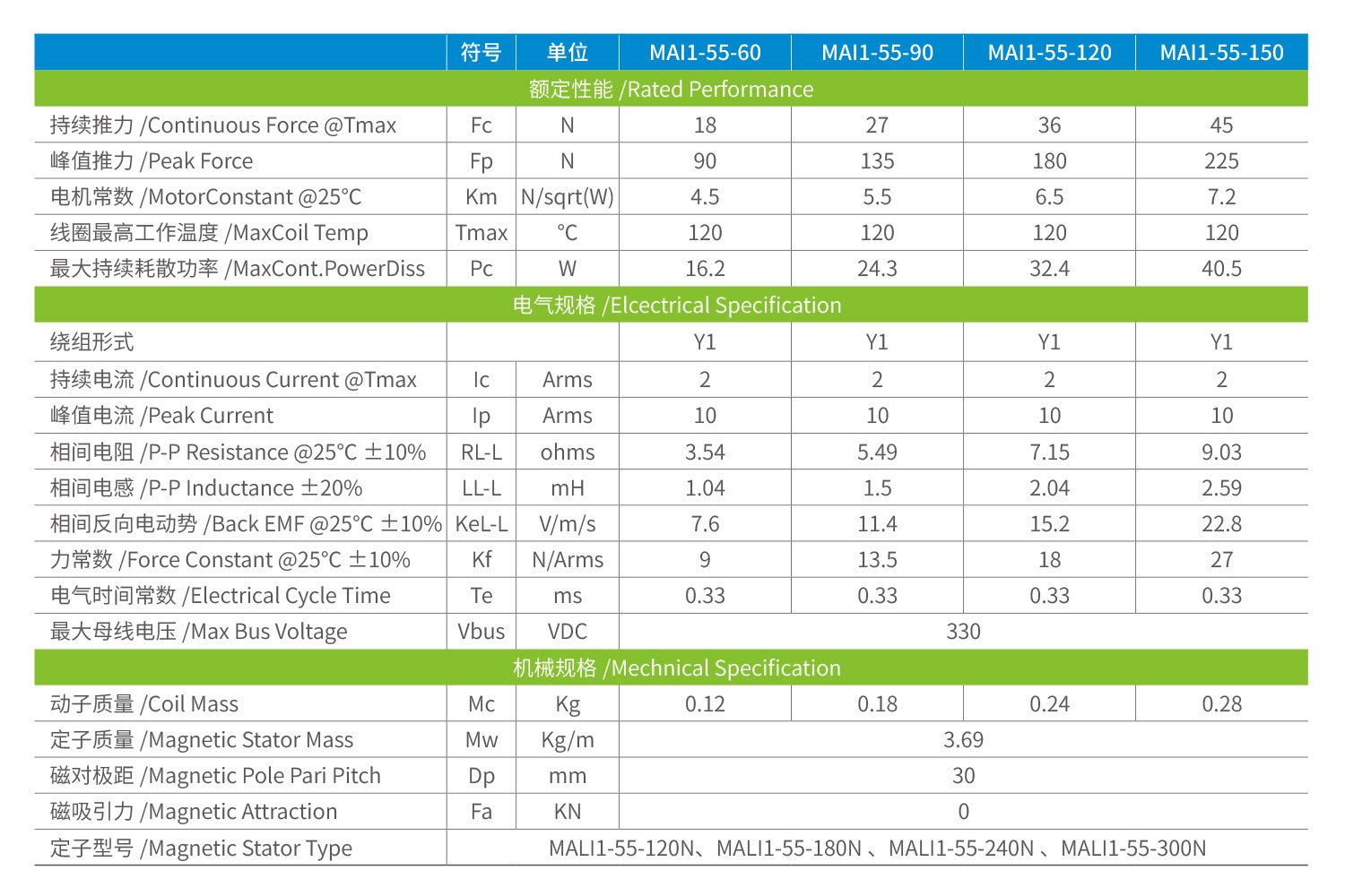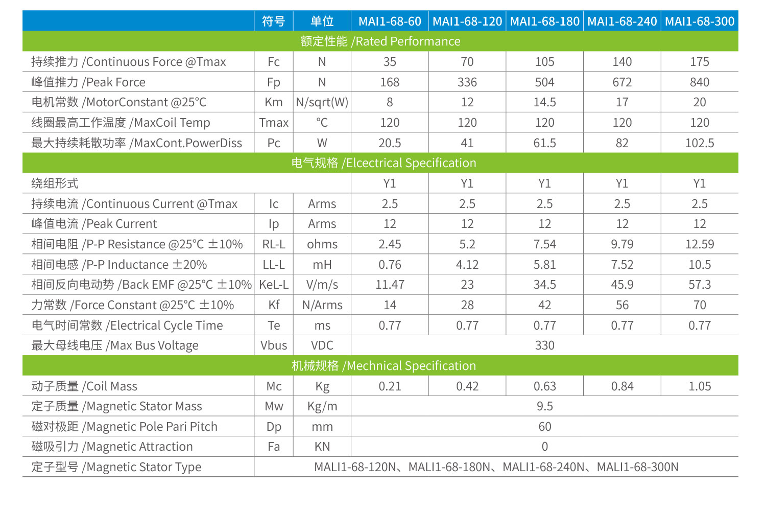 MAI系列 無鐵芯直線電機